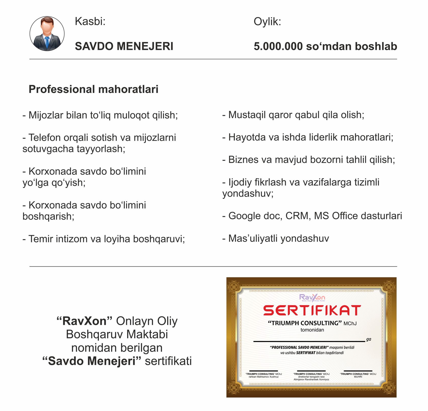 Да, мы разрешаем приводить с собой своих сотрудников. Оплатив за одного своего сотрудника, вы сами сможете обучаться бесплатно. Таким образом вы сможете видеть как он осваивает теорию, а практику вы будете внедрять вместе с ним. Если вы, внедрив наши рекомендации и советы, не получите результата, то мы вернем вам 100% ваших денег
